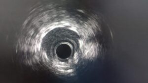 Following atherectomy, IVUS was performed, and this provided critical insight into the lesion morphology.